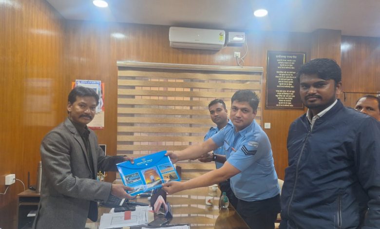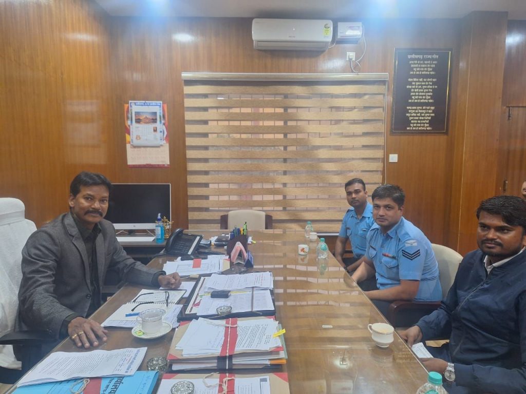 कलेक्टर श्री चौहान से वायुसेना के सार्जेंट चौबे और कार्पोल जेना ने मुलाकात किया