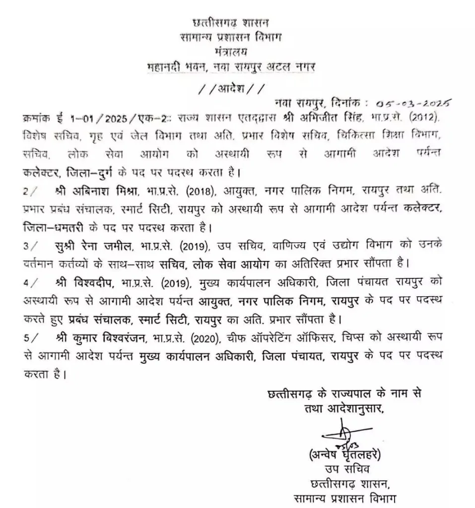 Big News Cg : IAS अधिकारियों का ट्रांसफर…