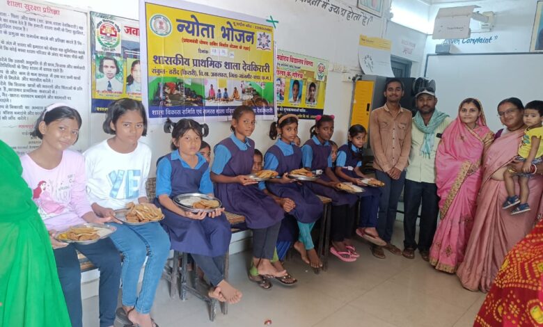अकलतरा। शासकीय प्राथमिक शाला देव किरारी में प्रधानमंत्री पोषण शक्ति निर्माण योजना के तहत छत्तीसगढ़ के मुख्यमंत्री विष्णुदेव साय की अपील पर पुरे प्रदेश में न्योता भोज का आयोजन किया जा रहा है,जिला प्रशासन द्वारा अभिनय पहल चलाया जा रहा है जिसके तहत शासकीय प्राथमिक शाला देव किरारी विगत वर्ष कक्षा पांचवी में अध्ययनरत छात्राएं कुमारी प्रियांशी साहू पिता सत्यम साहू एवं कुमारी सिंह साहू पिता अनिल कुमार साहू के जवाहरलाल नवोदय विद्यालय में चयन होने की खुशी के उपलक्ष में न्योता भोज कार्यक्रम रखा गया।