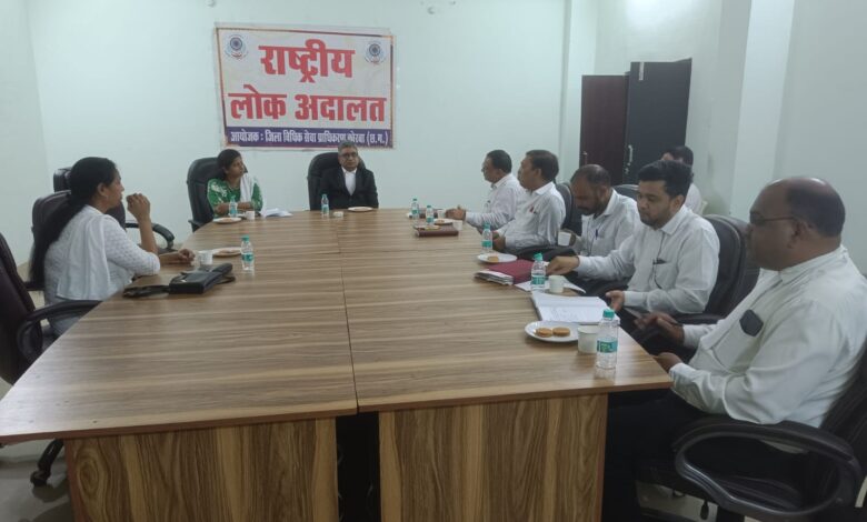 कोरबा। 13 जुलाई को आगामी नेशनल लोक अदालत का आयोजन जिला न्यायालय कोरबा एवं तहसील विधिक सेवा समिति कटघोरा, करतला एवं पाली एवं समस्त राजस्व न्यायालयों में लोक अदालत का आयोजन किया जावेगा। सत्येन्द्र कुमार साहू, प्रधान जिला न्यायाधीश एवं अध्यक्ष जिला विधिक सेवा प्राधिकरण कोरबा के द्वारा शासकीय बीमा कंपनी के शाखा प्रबंधक एवं अधिवक्तागणों की बैठक ली गई।