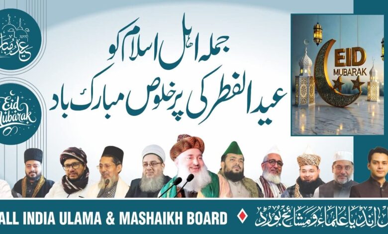 नई दिल्ली। आल इंडिया उलमा व मशायख़ बोर्ड के राष्ट्रीय अध्यक्ष एवं वर्ल्ड सूफी फोरम के चेयरमैन हजरत सैय्यद मोहम्मद अशरफ किछौछवी ने दुनिया के तमाम लोगों को ईद उल फ़ित्र की मुबारकबाद पेश करते हुए कहा कि ईद अल्लाह रब्बुल इज़्ज़त की जानिब से रमज़ानुल मुबारक के रोज़े के बाद तोहफ़ा है, और मोमिन अपने रब की बारगाह में यौमे ईद शुक्र का सजदा करते हैं और आपस में मुहब्बतों का इज़हार करते हैं यह ऐसा अमल है जिससे अल्लाह राज़ी होता है ।
