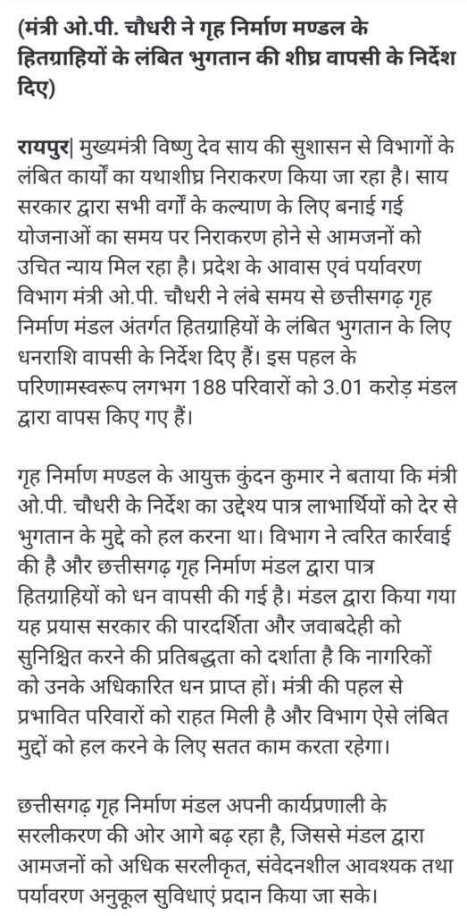 Home/छत्तीसगढ़/Cg News : गृह निर्माण मंडल ने 188 परिवारों को 3 करोड से अधिक की राशि वापस किए… छत्तीसगढ़रायपुर Cg News : गृह निर्माण मंडल ने 188 परिवारों को 3 करोड से अधिक की राशि वापस किए… SAYYED AMIR13, August 2024 4 Less than a minute TagsCG News: Housing Board returned more than 3 crores to 188 families... SAYYED AMIR13, August 2024 4 Less than a minute Share Facebook Twitter LinkedIn VKontakte WhatsApp Telegram Share via Email Print
