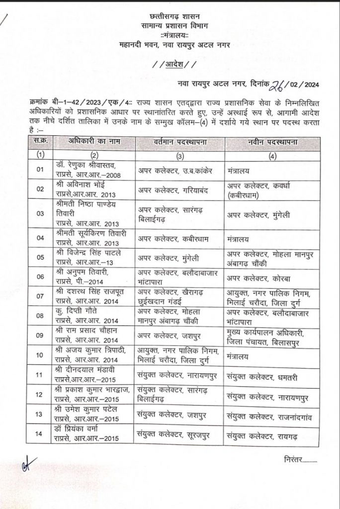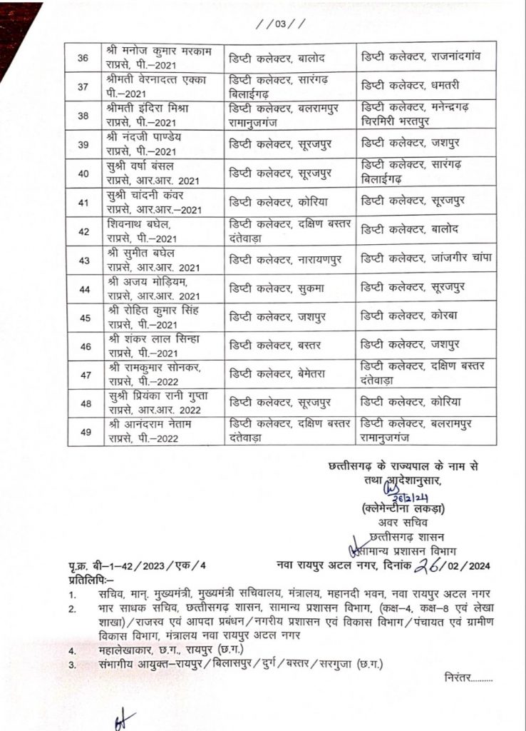 रायपुर। राज्य सरकार ने 49 अफसरों का ट्रांसफर किया है. जारी सूची में राज्य प्रशासनिक सेवा के अधिकारियों का नाम शामिल है।