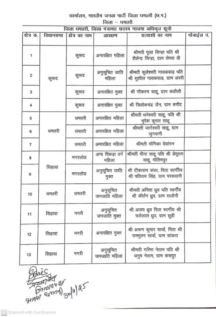 भाजपा ने जारी की जिला पंचायत सदस्य प्रत्याशियों की सूची…