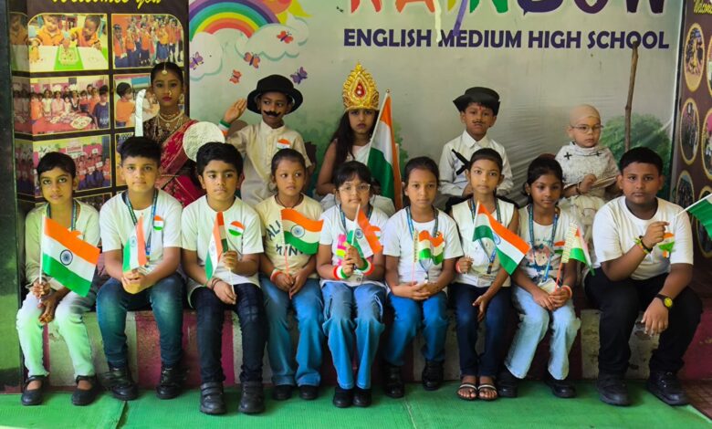 रायगढ़।रेनबो इंग्लिश मीडियम हाई स्कूल, मुख्य शाखा रायगढ़ व कुसमुरा शाखा के बच्चो ने 79 वां स्वाधीनता दिवस धूम धाम से शाला प्रांगण में मनाया। कार्यक्रम की शुरुआत में देश को आजादी दिलाने वाले प्रमुख महानायकों की स्मृति में दीप प्रज्जवलित कर ध्वजारोहण किया गया।