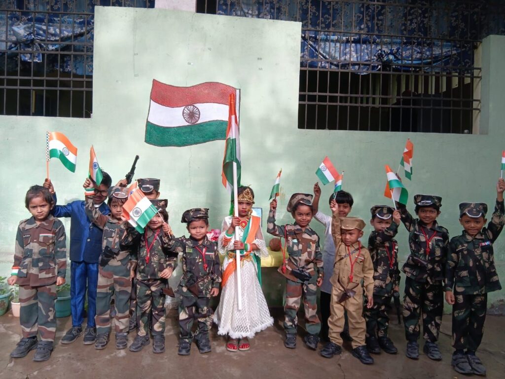 बच्चों द्वारा राष्ट्र गीत व झंडा गीत गा कर तिरंगे का सम्मान किया गया। व अनगिनत शहीदों को नमन कर देश के प्रति उनकी कुर्बानी की गाथा को संगीत रूप में प्रस्तुत किया। ततपश्चात कक्षा तीसरी, चौंथी, पाँचवी, छठवीं (माहि वैष्णवी, श्रुति, अलिज़बॉ, मनोनीत, लक्ष्य, सान्वी, पूनम, जिया, नैन्सी, अभय, मोहन, रूद्र, मानव, ताबिश, रेणुका, भाविका, मोक्षी, चोसमान, निशिका, तुषार, देवांश, आरव ) के विद्यार्थियों ने देश भक्ति गीत में मनमोहक नृत्य प्रस्तुत किये।