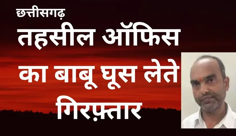 भिलाई।दुर्ग जिले के बोरी तहसील कार्यालय में पदस्थ एक बाबू, वीरेंद्र तुरकाने को भ्रष्टाचार निरोधक ब्यूरो (ACB) ने रिश्वत लेते हुए रंगे हाथों गिरफ्तार किया है।