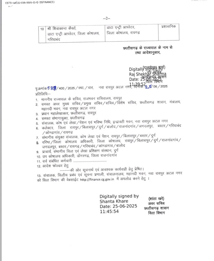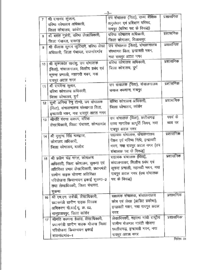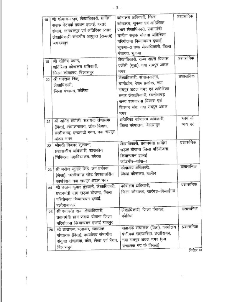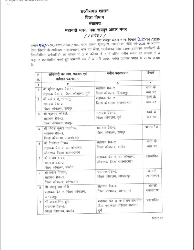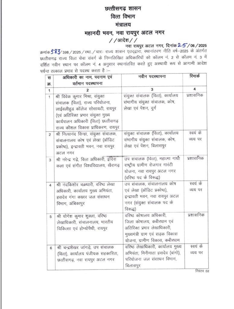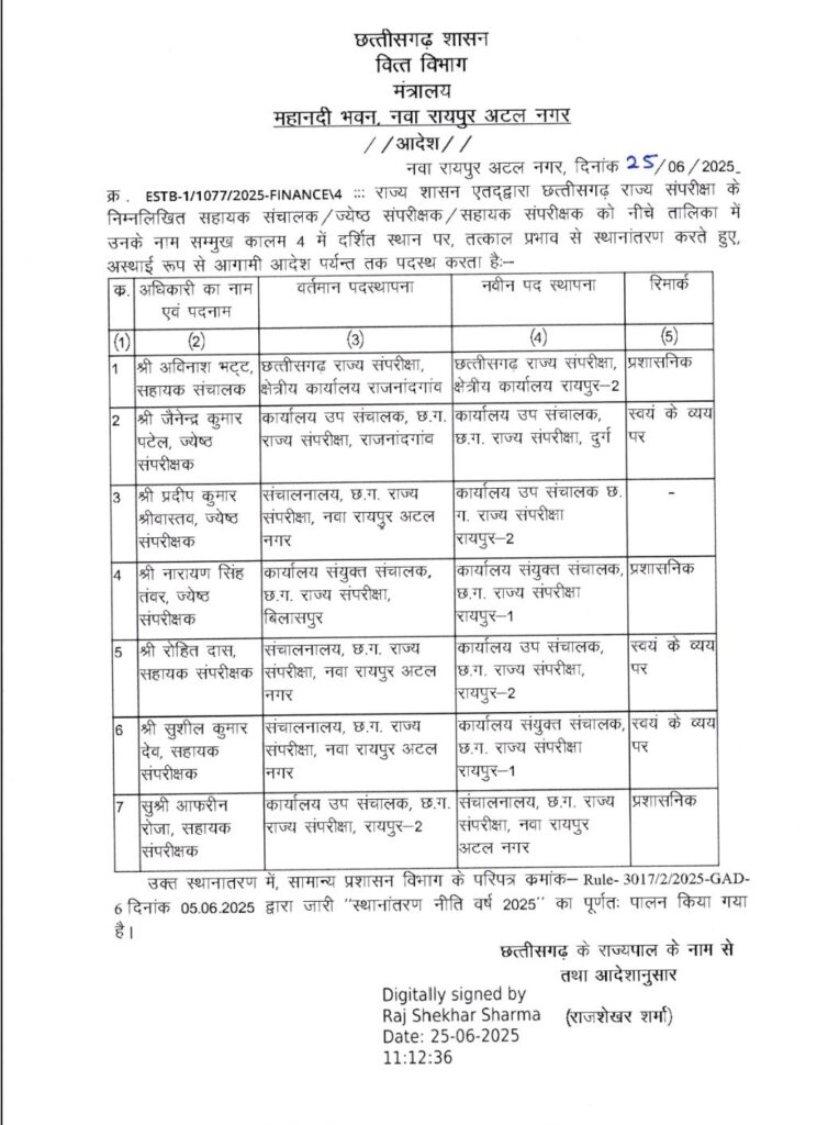 CG NEWS : राज्य वित्त सेवा और संपरीक्षा विभाग में तबादले..
