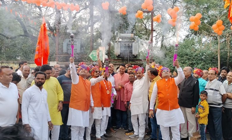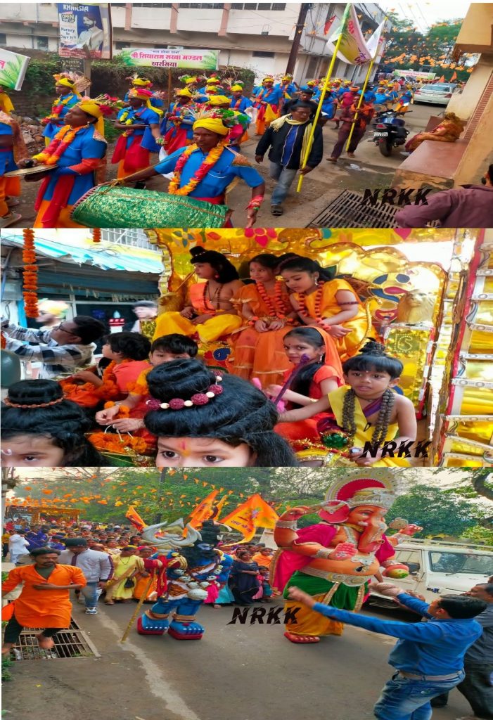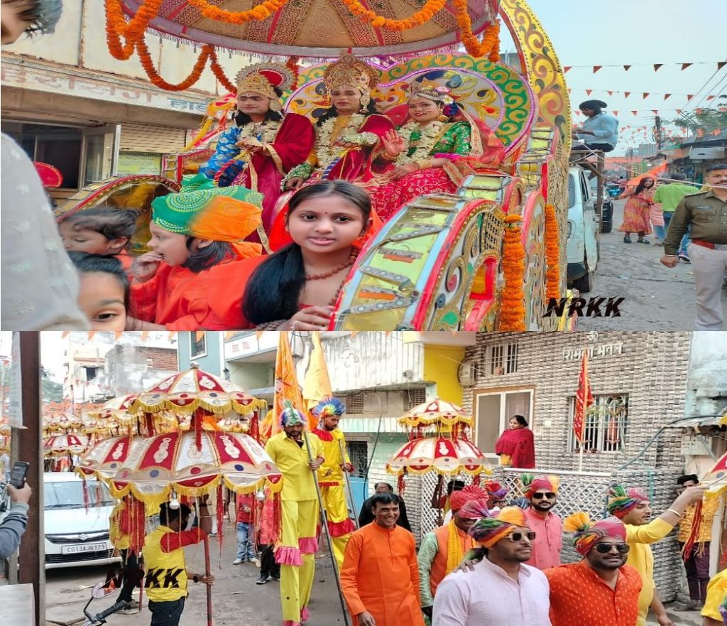 खरसिया।धर्म की नगरी खरसिया में प्रदेश भर में सबसे विशाल शोभा यात्रा देखने को मिली जिसमे हजारों श्रद्धालु पगड़ी पहन कर हाथो में भगवा ध्वज लिए एक साथ झूमते नजर आए कर्मा नृत्य , कोलकाता से मनमोहक राम दरबार रथ पर विराजमान थे ,राम लला के बाल स्वरुप नन्हे नन्हे बच्चे रथ पर विराजमान थे, नन्हे नन्हे बच्चे बजरंग बली का स्वरूप धारण कर हाथ में गदा लिए भक्ति में झूम रहे थे, अग्नि से कलाकारी दिखाने वाले राची से आए कलाकार ने चोक चौराहों में लोगो का मन मोह लिया , 15 फिट के गणेश जी शोभा यात्रा के प्रथम पंथ आगे आगे चल रहे थे, दिल्ली से आए कलाकार महाकाल बाबा भव्य शंकर भोलेनाथ , बाहुबली हनुमान जी , कलर स्मोक भगवा पेपर की बारिश , फूलो से स्वागत ,इतनी शानदार आकर्षित आतिशबाजी पहली बार देखने को मिली, हर रोड भगवा झंडा भगवा ध्वज और झालरों से सजा हुआ था वहीं घरों के सामने रंगोली बना कर माताएं बहने दीप जलाकर आरती कर शोभा यात्रा राम लला का स्वागत कर रहे थे वहीं हर गली चौक चौराहों में शोभा यात्रा का स्वागत लोगो ने बहुत ही शानदार रूप से किया।