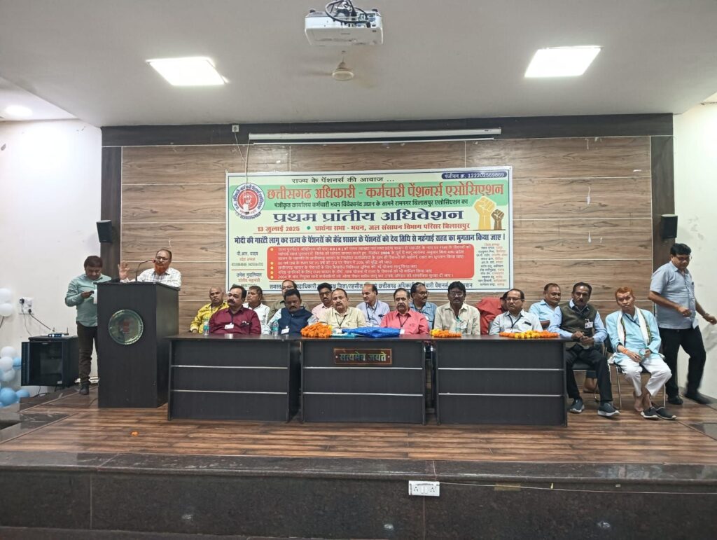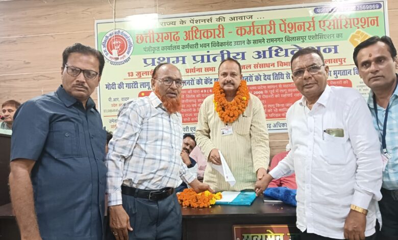 रायगढ़।छत्तीसगढ़ अधिकारी कर्मचारी पेंशनर्स एसोसिएशन रायगढ़ जिला शाखा अध्यक्ष शेख कलीमुल्लाह सचिव आर एन साहू ने बताया कि छत्तीसगढ़ अधिकारी कर्मचारी पेंशनर्स एसोसिएशन का प्रथम प्रांतीय अधिवेशन दिनांक 13 जुलाई को सुबह 11:00 बजे प्रार्थना सभा कक्ष जल संसाधन विभाग परिसर बिलासपुर मे संपन्न हुआ. अधिवेशन में प्रांतीय कार्यकारिणी का निर्वाचन श्री जी आर चंद्रा (प्रांत अध्यक्ष छत्तीसगढ़ प्रदेश तृतीय वर्ग शासकीय कर्मचारी संघ) निर्वाचन अधिकारी,पवन शर्मा (प्रांतीय सचिव छत्तीसगढ़ प्रदेश तृतीय वर्ग शासकीय कर्मचारी संघ)व किशोर शर्मा ( सचिव छत्तीसगढ़ प्रदेश तृतीय वर्ग शासकीय कर्मचारी संघ जिला बिलासपुर ) सहायक निर्वाचन अधिकारी की देखरेख में निर्विरोध संपन्न हुआ. श्री पी आर यादव अध्यक्ष,आर पी सिंह उपाध्यक्ष उमेश मुदलियार सचिव, सुहास कुमार चिपड़े कोषाध्यक्ष, डी एल डहरिया, सी एल दुबे संयुक्त सचिव, श्रीमती मधु सूद श्री एस पी करोसिया कार्यकारिणी सदस्य निर्विरोध निर्वाचित हुए।