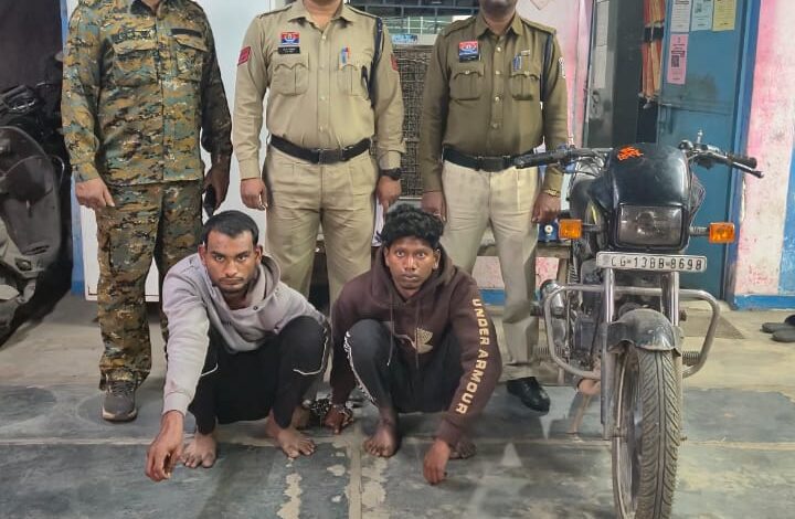 रायगढ़।टुर्कुमुडा स्थित शराब भट्ठी के पास सोमवार रात ऑटो चालक और उसके साथी से हुए मारपीट प्रकरण में जूटमिल पुलिस ने तेज और सख्त कार्रवाई करते हुए दो आरोपियों को गिरफ्तार कर हत्या के प्रयास के अपराध में न्यायिक रिमांड पर जेल भेज दिया है। घटनाक्रम के अनुसार प्रार्थी रफी आलम, उम्र 22 वर्ष, निवासी कायाघाट ने थाना पहुंचकर बताया कि वह ऑटो क्रमांक CG 13 AA 5862 चलाता है और 1 दिसंबर की रात लगभग 10:10 बजे अपने साथी राजू साहू के साथ सवारी छोड़कर छातामुडा चौक से लौट रहा था। इसी दौरान राजू साहू किराना दुकान में गुटखा लेने गया, जहां एक युवक उससे बिना वजह गाली- गलौज कर रहा था। शोर सुनकर जब रफी दुकान के पास पहुंचा तो आकाश राय ने राजू को अश्लील गालियां देते हुए हाथ-मुक्के से मारपीट कर रहा था। तभी वहीं मौजूद निकुंज खड़िया नामक युवक जो आकाश राय का साथी है ने रफी और उसके साथी राजू दोनों की पीठ पर धारदार हथियार से वार कर गंभीर चोटें पहुंचाईं। घायलों को शासकीय अस्पताल में उपचार के बाद थाना में रिपोर्ट दर्ज की गई।