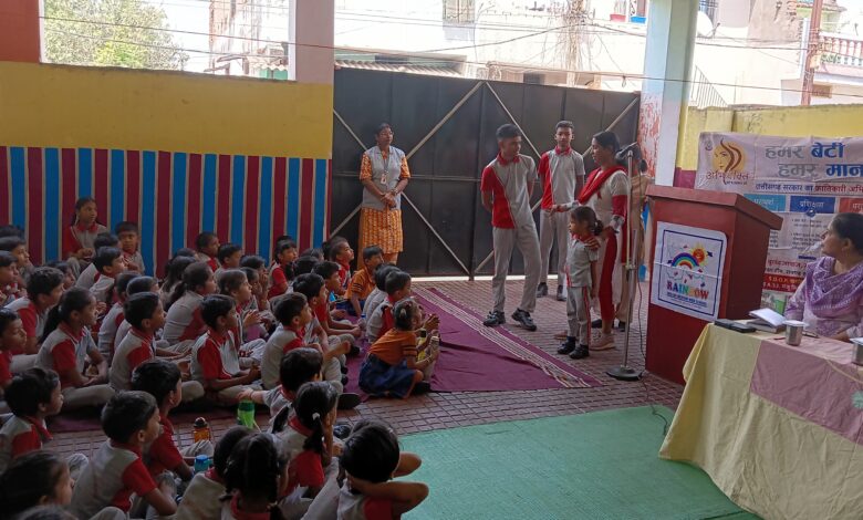 रायगढ़।रेनबो हाई स्कूल शैलेन्द्र नगर व कुसमुरा शाखा के बच्चों को रायगढ़ पुलिस प्रशासन ने गुड टच बेड टच व सोशल मीडिया के सही उपयोग को लेकर विद्यालय के बच्चों को अवगत कराया गया। कार्यक्रम की शुरुआत में संस्था की शिक्षिकाओं द्वारा संयुक्त परिवार के महत्व, मोबाइल का सही उपयोग तथा समय के महत्व पर मनोरंजक पपेट (कठपुतली) शो प्रस्तुत किया गया। शैक्षिणक गतिविधियों के अंतर्गत कक्षा 8 वीं से 10 वीं के विद्यार्थियों द्वारा अर्थ डे पर पर्यावरण संरक्षण का संदेश देते हुए नाटक प्रस्तुत किया गया।