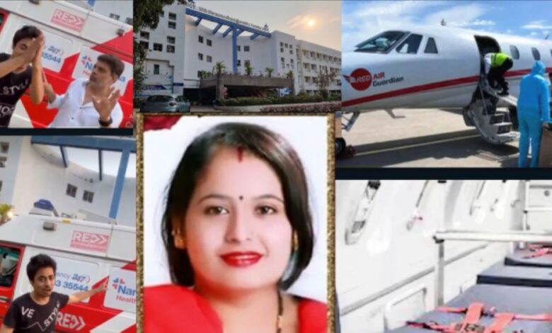 एयर एंबुलेंस के लिए साढ़े 5 लाख रुपए का भुगतान, एयर एंबुलेंस में वेंटीलेटर, ऑक्सीजन तक नही , एंबुलेंस में AC तक नहीं,एयरपोर्ट में ही महिला की मौत हो गई:..