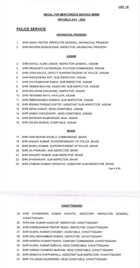 छत्तीसगढ़ में 22 पुलिस अफसरों को मिलेगा पुलिस पदक, एक को राष्ट्रपति पदक, जानिए कौन-कौन होंगे सम्मानित…