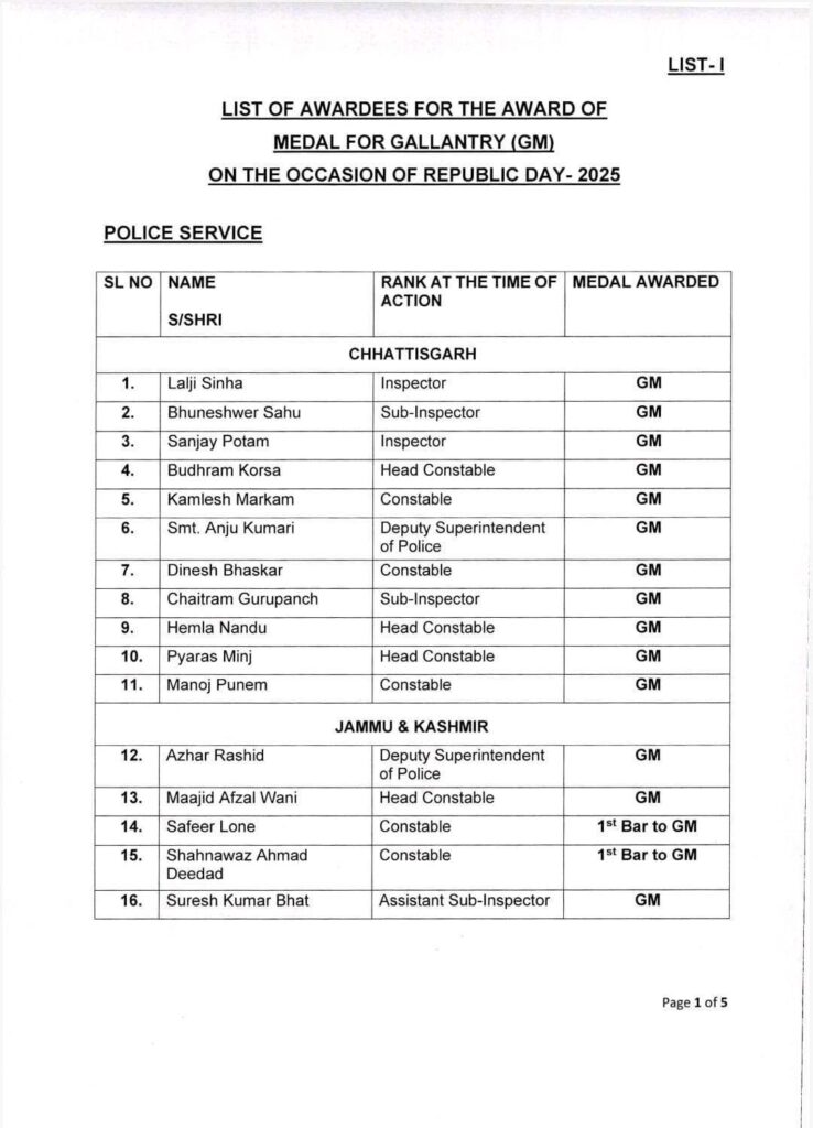 कवर्धा के डीएसपी अंजू कुमारी और थाना कोतवाली प्रभारी निरीक्षक लालजी सिन्हा को उनके साहस, उत्कृष्ट नेतृत्व और नक्सल उन्मूलन अभियान में उनके असाधारण योगदान के लिए देश के सर्वोच्च पुलिस वीरता पदक से सम्मानित किया जाएगा. अंजू कुमारी ने नक्सल मोर्चे पर महत्वपूर्ण भूमिका निभाते हुए देश की पुलिस सेवा में एक नई मिसाल कायम पेश की है. वे नक्सल मोर्चे पर शामिल होने वाली पहली महिला राजपत्रित अधिकारी हैं, जिन्हें वीरता पदक से सम्मानित किया जाएगा. उनकी यह उपलब्धि न केवल महिला सशक्तिकरण का प्रतीक है, बल्कि पुलिस सेवा में महिलाओं की शक्ति और साहस को भी उजागर करती है.