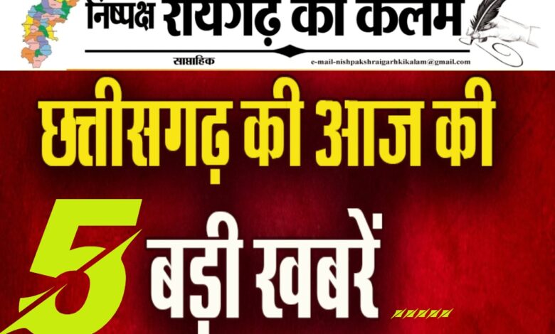आज की छत्तीसगढ़ की 5 बड़ी प्रमुख खबरें…
