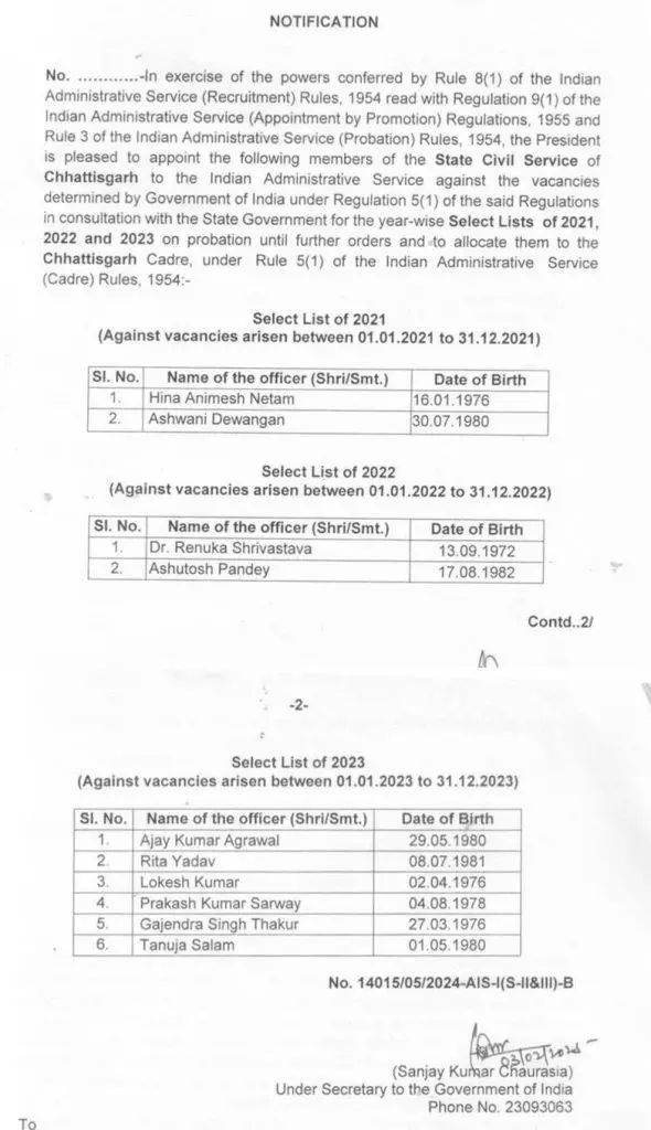 IAS बने छत्तीसगढ़ के 11 अफसर….
