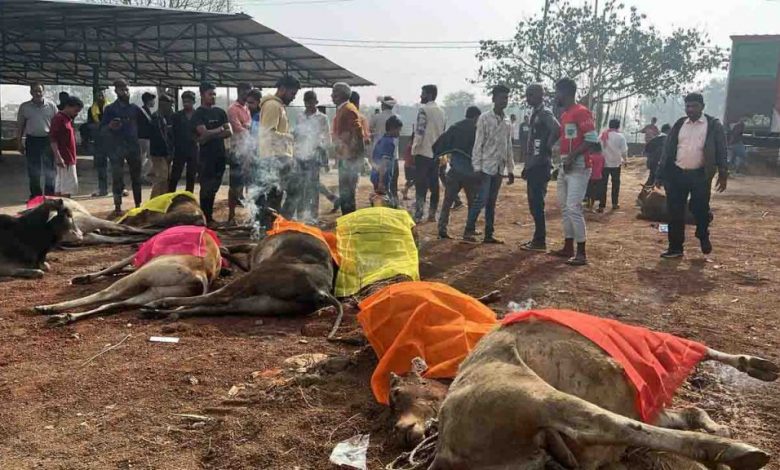 रायपुर।राजधानी से सटे हीरापुर से एक बड़ी खबर सामने आई है. मिली जानकारी के अनुसार वहां के स्थानीय निवासियों ने मवेशियों से भरी ट्रक को पकड़ा है. जिसमें 13 गाय मृत हालत में मिली है.पुलिस को इसकी सूचना दे दी गई है।